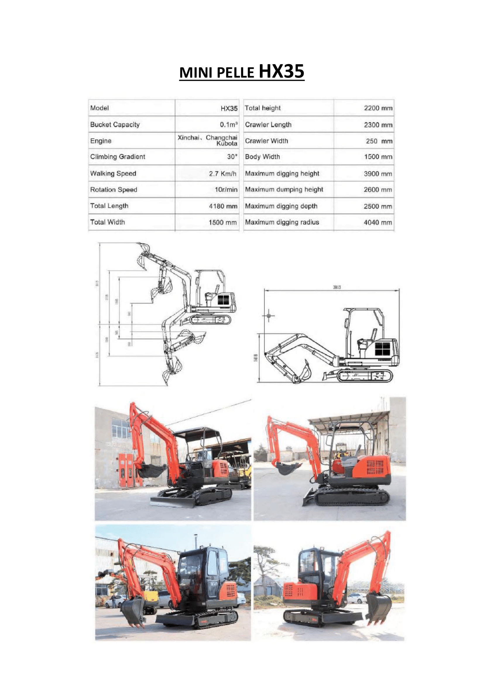 | Mini-pelle 4 Tonnes HX 35 | Godets |